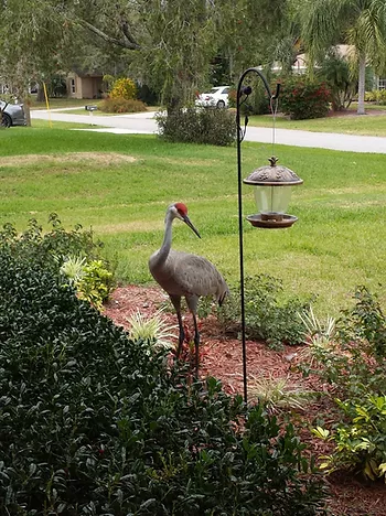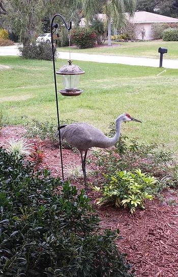These Sand Hill Cranes come to visit several times a week. They can be seen flying into our back yard area, walking down our street or like today in our front yard.